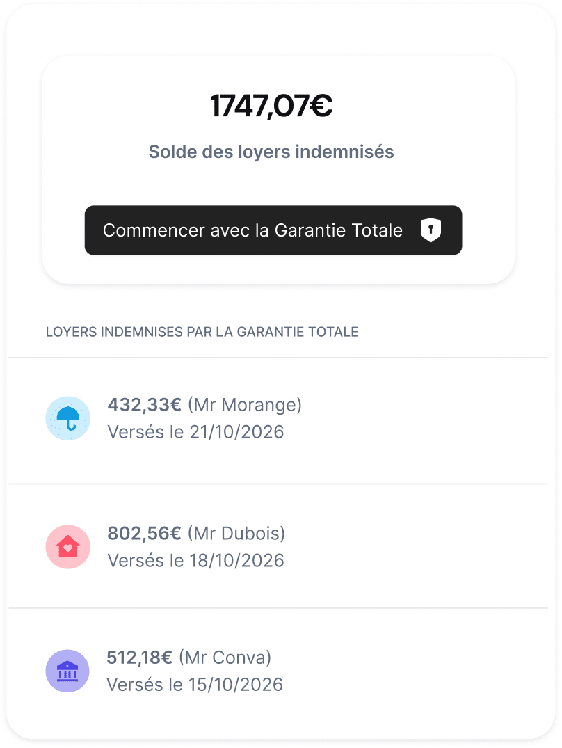 Paiement du loyer garanti à 100 % tous les mois. A partir de 1,7 % TTC